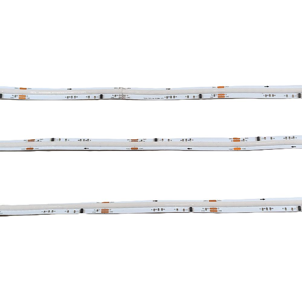 Since this strip has multiple ICs, there is a wire for 24 volt power, ground, and communication. The reduced footprint means these RGBW strips are narrower (10mm) than the traditional counterpart (12mm) which have individual leads for each color plus positive voltage.