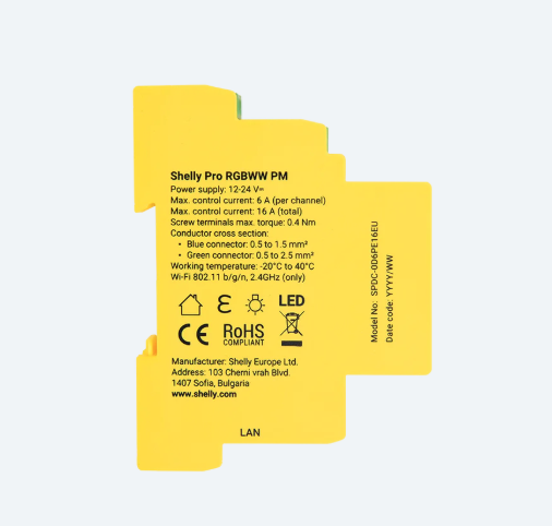 Shelly’s first DIN-rail mountable, five-channel smart light controller for managing adjustable white channels (CCT) and 5 LED strips independently. Featuring power measurement that allows real-time track of the voltage, current, and power consumption.