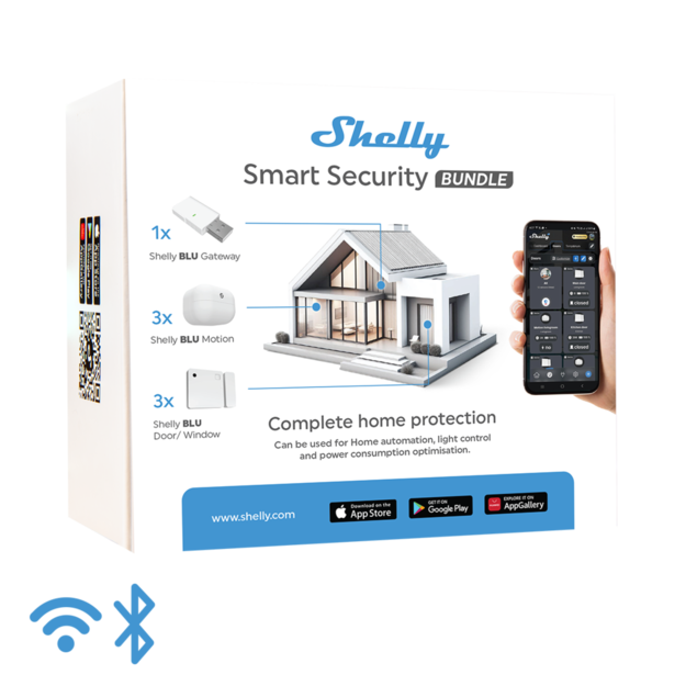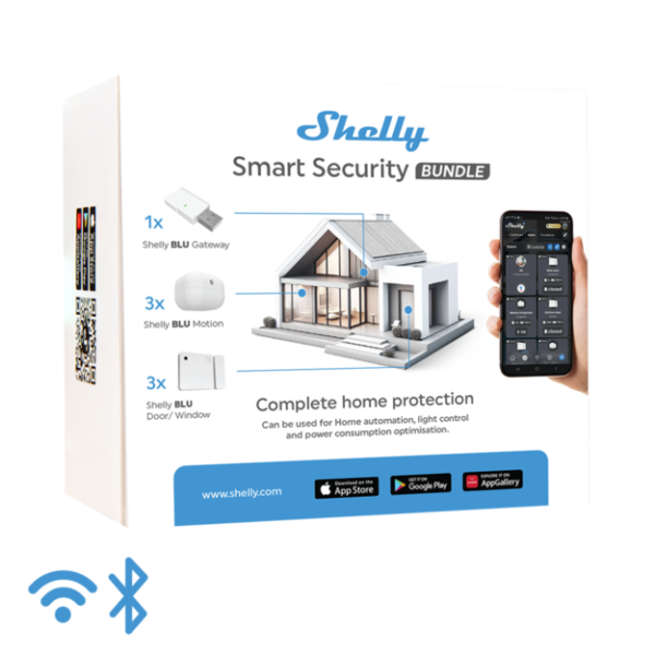 Discover the Shelly Smart Security Bundle, your key to smarter home security and automation! This collection of Bluetooth devices adds an extra layer of protection to your home. With long-lasting battery life and advanced Bluetooth technology, it offers continuous monitoring, giving you peace of mind no matter where you are.
